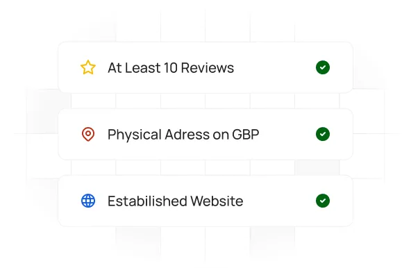 For our service to be effective, your GBP must have a physical and digital address and at least 10 reviews. This foundational setup allows us to optimize and enhance your online presence more efficiently.